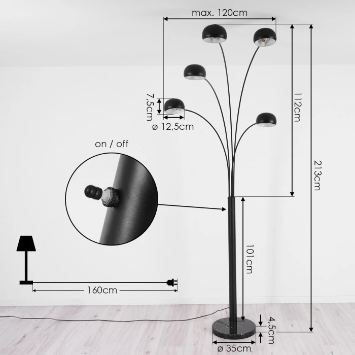 Hofstein Nikkala Stehleuchte Schwarz, 5-flammig